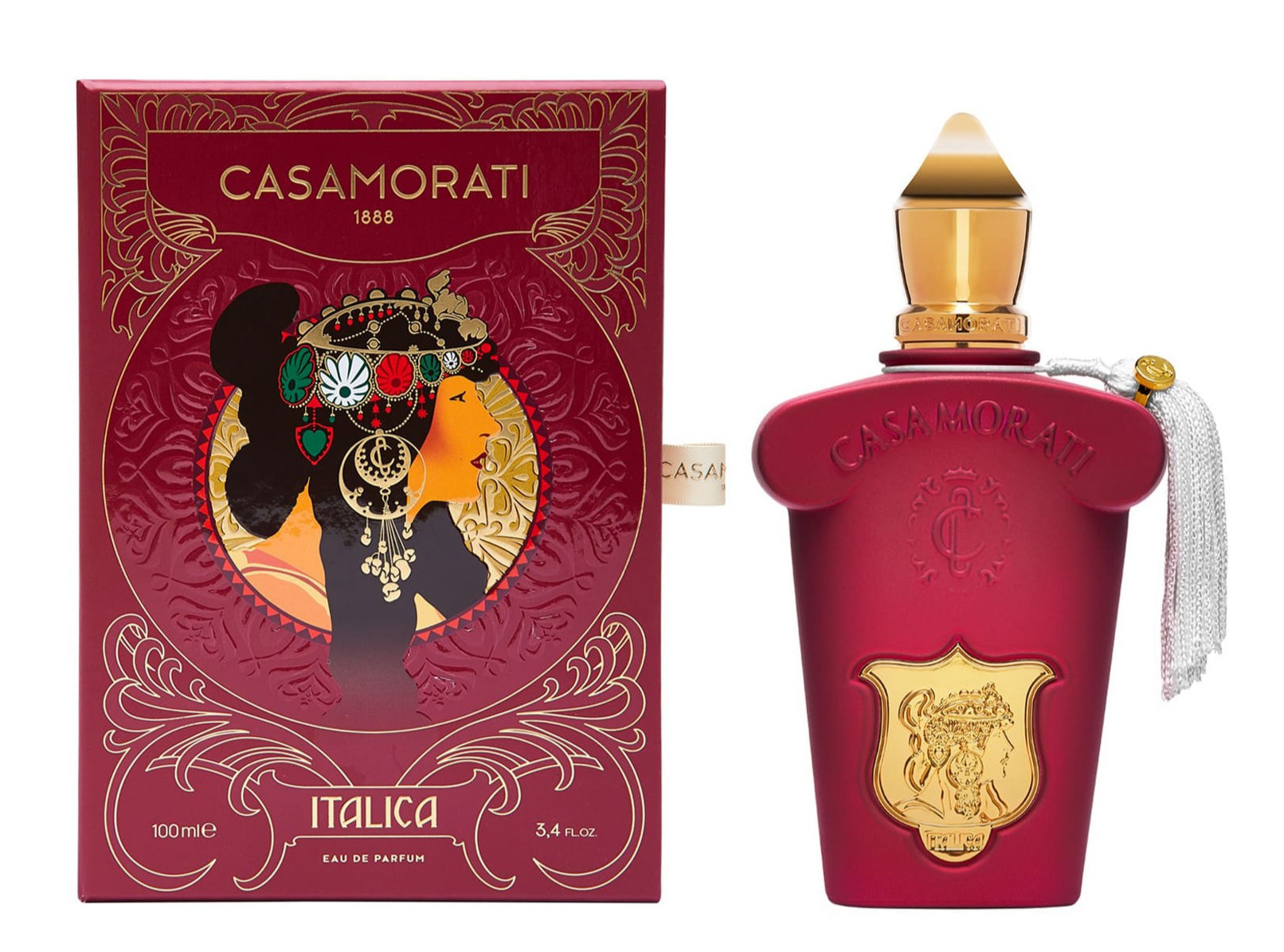 Casamorati 1888 Italica – мягкий, бархатистый, манящий и обольстительный восточный унисекс парфюм с утонченными древесными и гурманскими акцентами. Аромат выпущен итальянским нишевым парфюмерным домом Xerjoff и одет в характерный для бренда винтажный флакончик, на этот раз бархатисто-бордового оттенка, украшенный белой шелковой кисточкой.