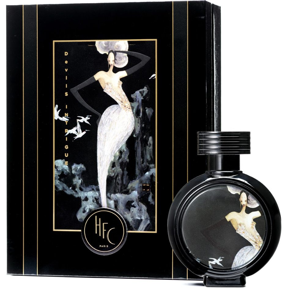 Haute Fragrance Company Devils Intrigue — тонкий, волнующий и интригующий женский цветочно-древесный аромат окутанный легкой мускусной дымкой. Парфюм выпущен в 2018 году французским нишевым парфюмерным брендом Haute Fragrance Company в рамках его «Азиатской коллекции». Округлый угольно-черный дизайнерский флакон, украшенный тематическим цветным принтом, подчеркивает оригинальность заключенного в нем парфюма.