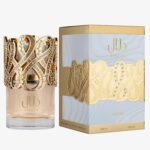 Лаконичный флакон Lattafa Dalal из матового стекла украшен роскошным ювелирным колпачком с рельефной золотистой вязью с сияющими кристаллами.