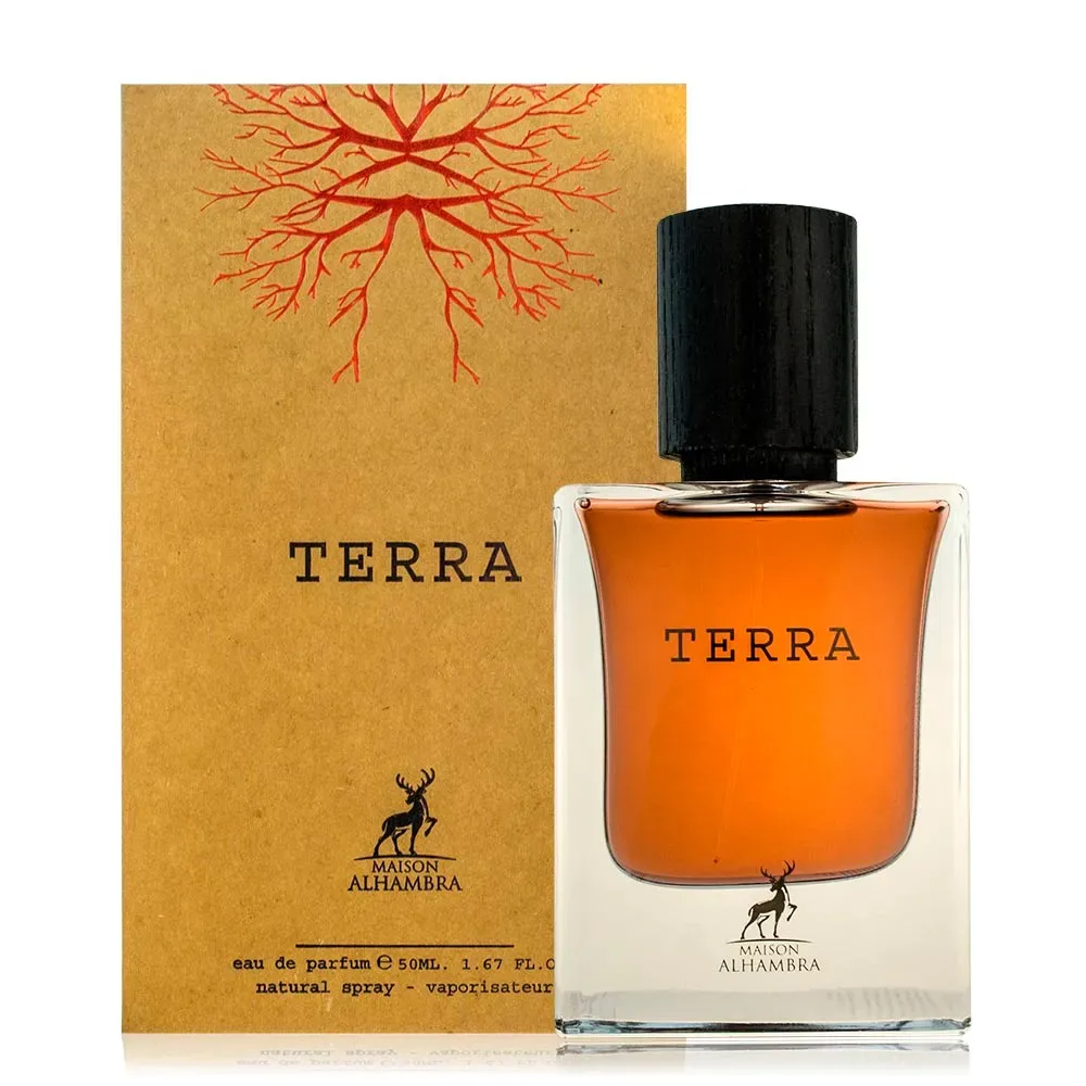 Maison Alhambra Terra — это унисекс аромат, выпущенный в 2022 году в ОАЭ, который относится к восточно-древесному семейству. Композиция сочетает в себе теплые, смолистые и древесные ноты, создавая богатый и многослойный аромат, подходящий как для мужчин, так и для женщин.