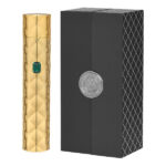 Флакон Serr D’Eden украшен стильным рифлением. Футляр с изысканной гравировкой изготовлен из полированного золотистого металла и декорирован зеленым кристаллом Swarovski. В футляре находится флакон парфюмерной воды 50 мл. Набор также содержит бархатный мешочек, в котором очень удобно носить флакон с любимым парфюмом в сумочке.